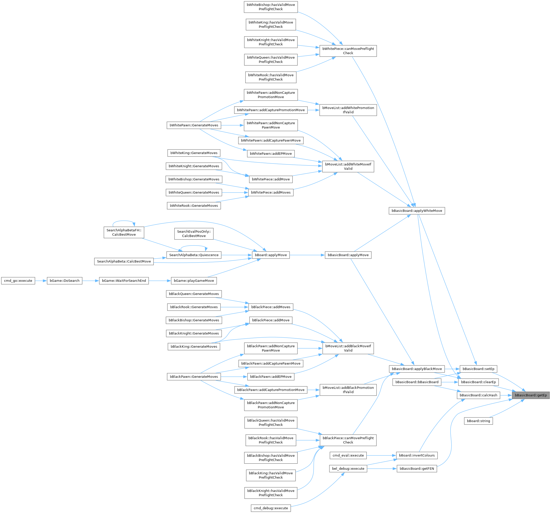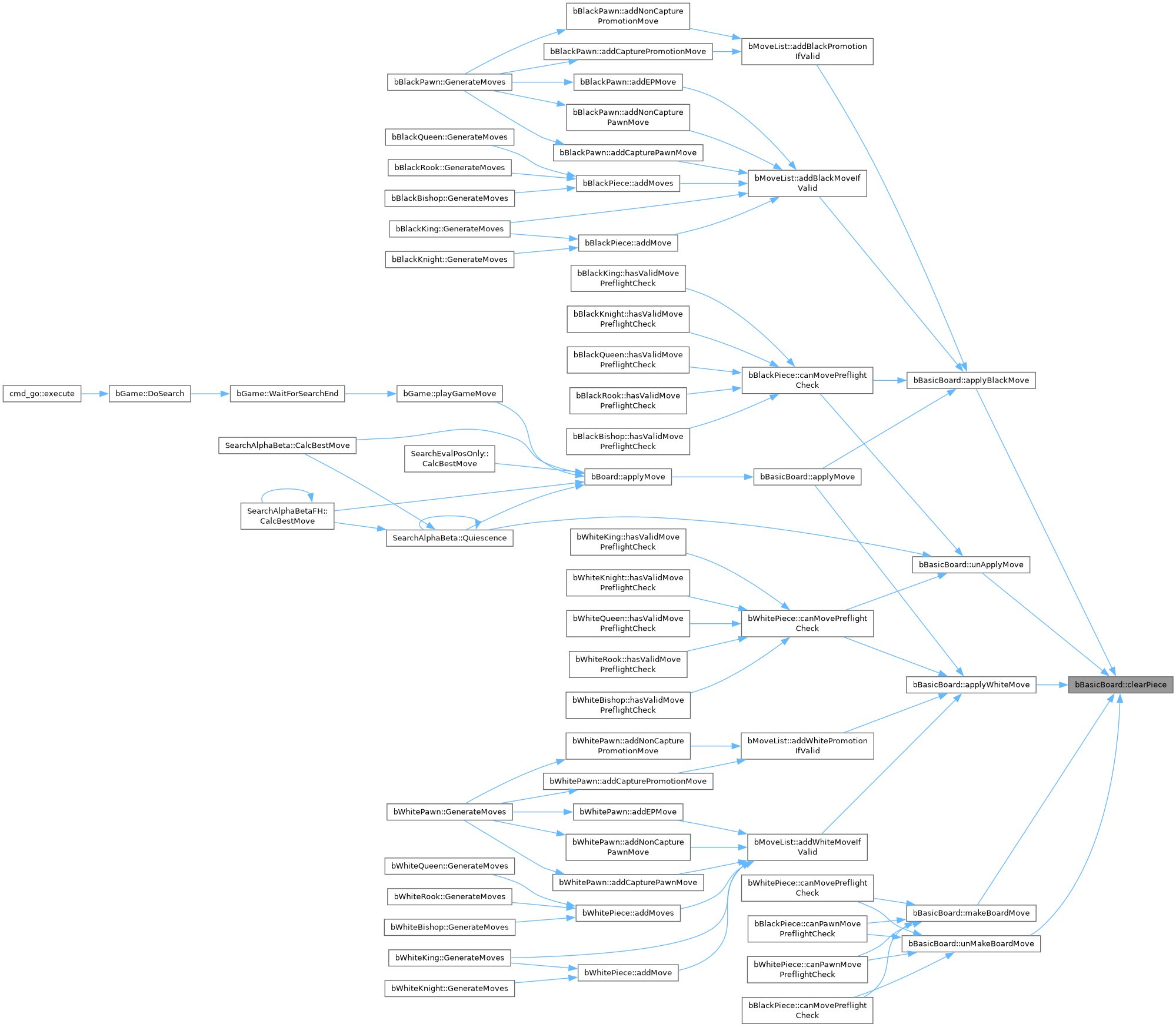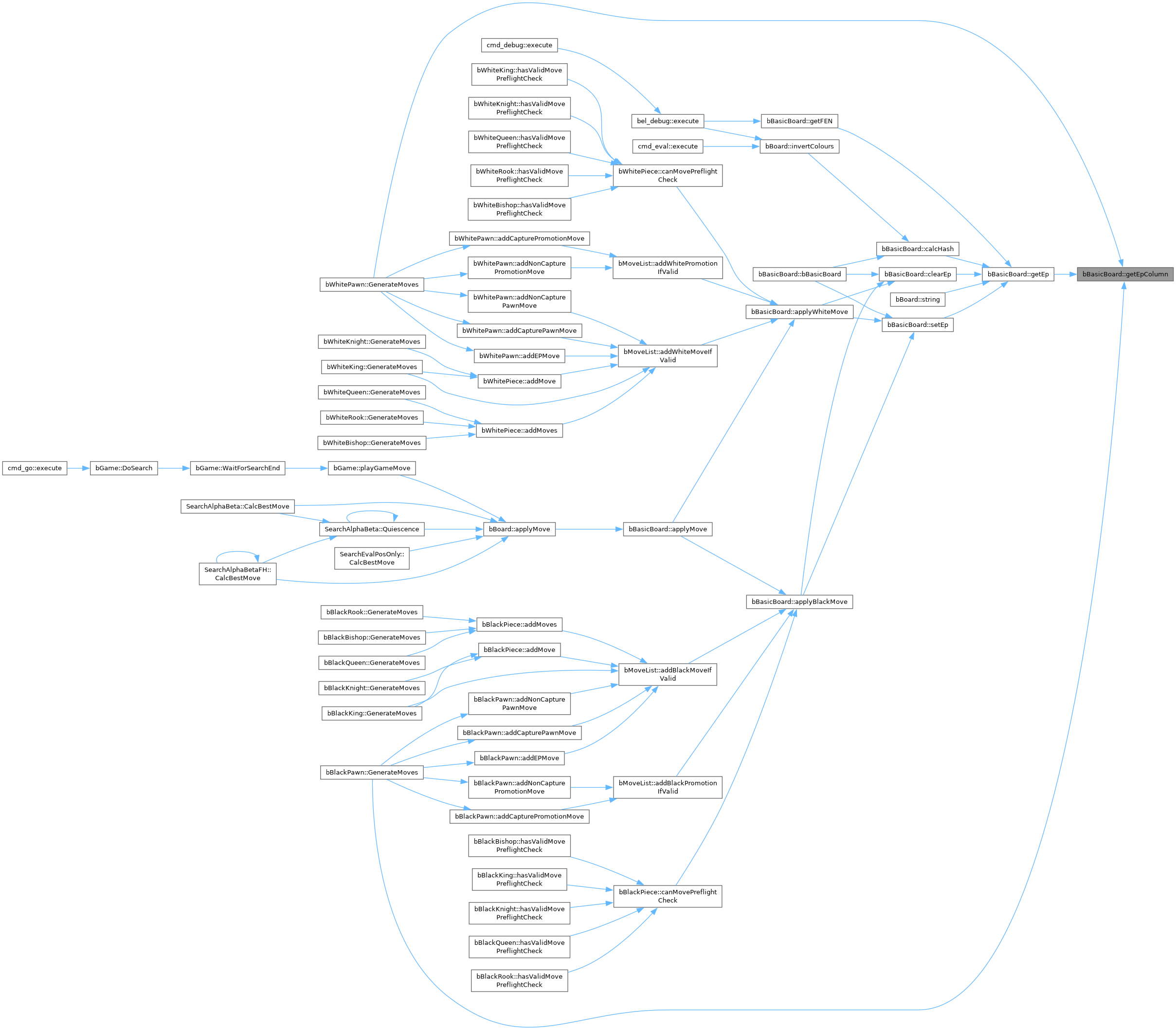 Referenced by bBlackPawn::addCapturePawnMove(), bWhitePawn::addCapturePawnMove(), bBlackPawn::addCapturePromotionMove(), bWhitePawn::addCapturePromotionMove(), bBlackPiece::addMove(), bWhitePiece::addMove(), bBlackPiece::addMoves(), bWhitePiece::addMoves(), applyBlackMove(), applyWhiteMove(), bMoveList::atLeastOneMovePossible(), calcHash(), bBoard::calcMinorPieces(), bBlackPiece::canMovePreflightCheck(), bBlackPiece::canMovePreflightCheck(), bWhitePiece::canMovePreflightCheck(), bWhitePiece::canMovePreflightCheck(), bBlackPiece::canPawnMovePreflightCheck(), bWhitePiece::canPawnMovePreflightCheck(), bMoveList::generateMoves(), PosEvalStaticBoard::getEndgameEvaluation(), PosEvalPiecesOnly::getEvaluation(), getFEN(), PosEvalStaticBoard::getMatingEvaluation(), PosEvalStaticBoard::getPawnEndingEvaluation(), PosEvalStaticBoard::getRelativeBoardEval(), bBoard::invertColours(), bBlackPiece::isAttacked(), bWhitePiece::isAttacked(), bPieceColour::isAttackedBySlider(), makeBoardMove(), bBoard::operator std::string(), unApplyMove(), and unMakeBoardMove().