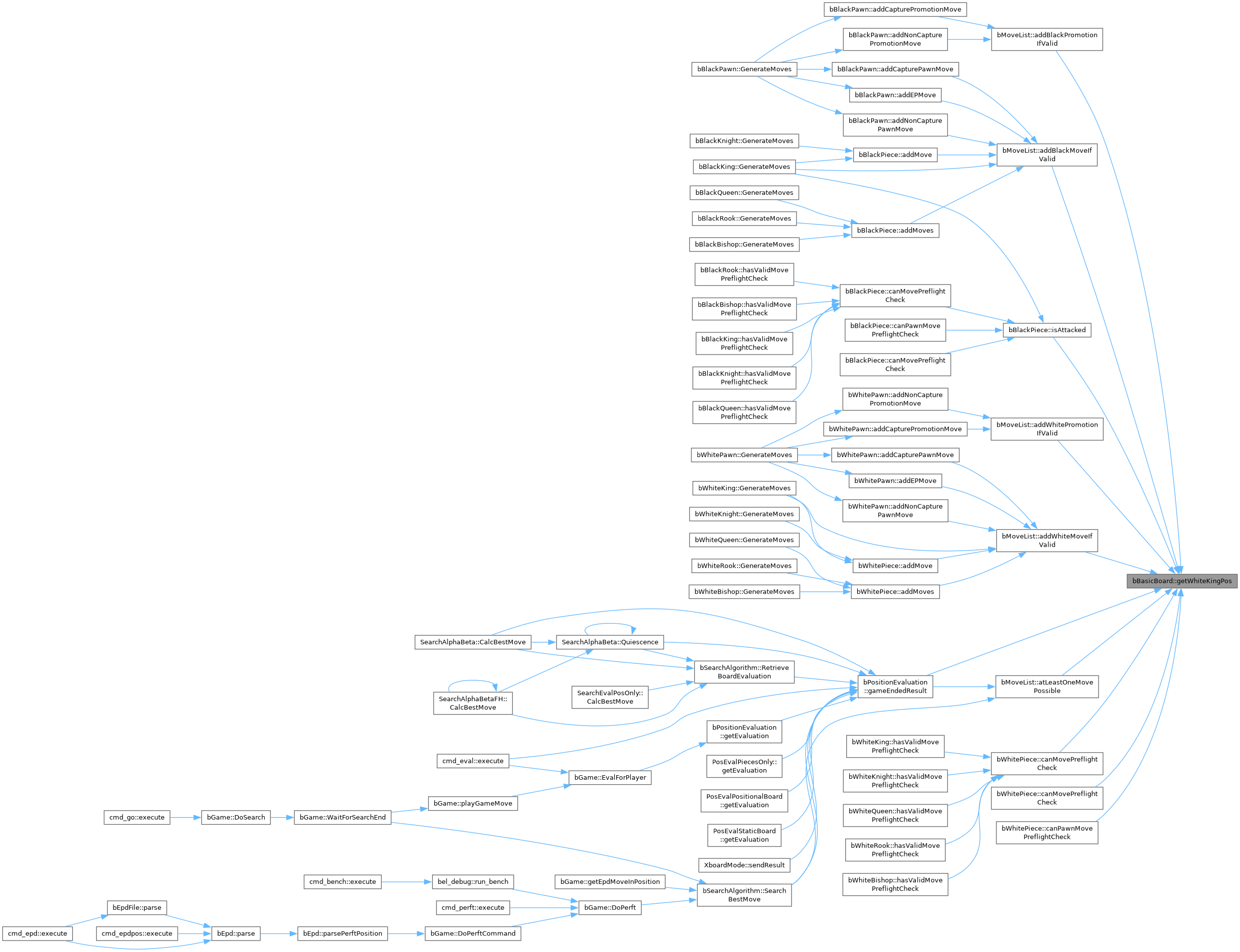 Referenced by bMoveList::addBlackMoveIfValid(), bMoveList::addBlackPromotionIfValid(), bMoveList::addWhiteMoveIfValid(), bMoveList::addWhitePromotionIfValid(), bMoveList::atLeastOneMovePossible(), bWhitePiece::canMovePreflightCheck(), bWhitePiece::canMovePreflightCheck(), bWhitePiece::canPawnMovePreflightCheck(), bPositionEvaluation::gameEndedResult(), and bBlackPiece::isAttacked().
