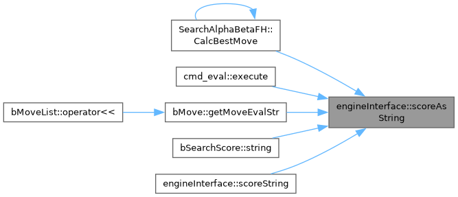 Referenced by SearchAlphaBetaFH::CalcBestMove(), cmd_eval::execute(), bMove::getMoveEvalStr(), bSearchScore::operator std::string(), and scoreString().