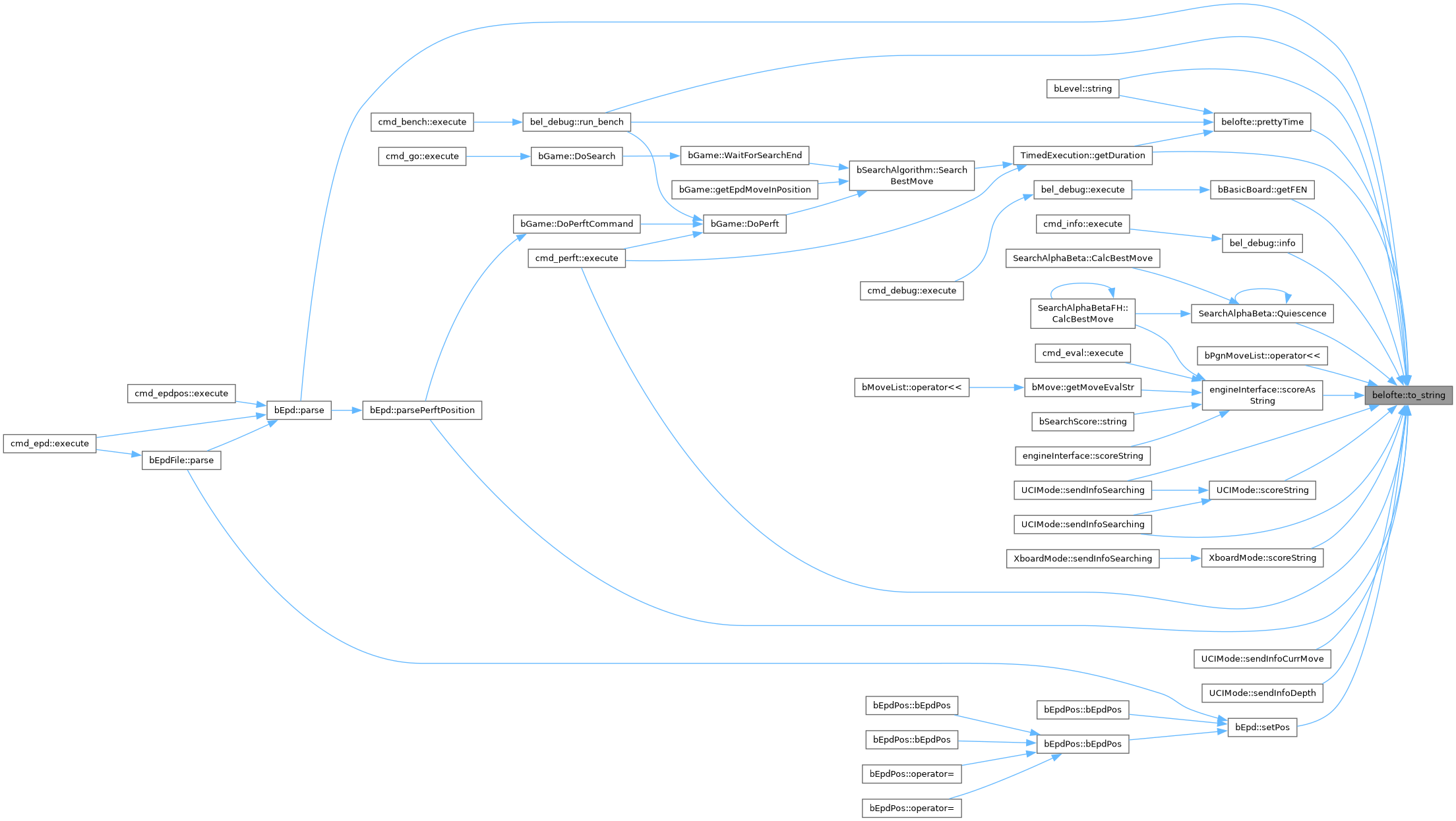 Referenced by cmd_perft::execute(), TimedExecution::getDuration(), bBasicBoard::getFEN(), bel_debug::info(), bLevel::operator std::string(), bPgnMoveList::operator<<, bEpd::parse(), bEpd::parsePerftPosition(), prettyTime(), SearchAlphaBeta::Quiescence(), bel_debug::run_bench(), engineInterface::scoreAsString(), UCIMode::scoreString(), XboardMode::scoreString(), UCIMode::sendInfoCurrMove(), UCIMode::sendInfoDepth(), UCIMode::sendInfoSearching(), UCIMode::sendInfoSearching(), and bEpd::setPos().