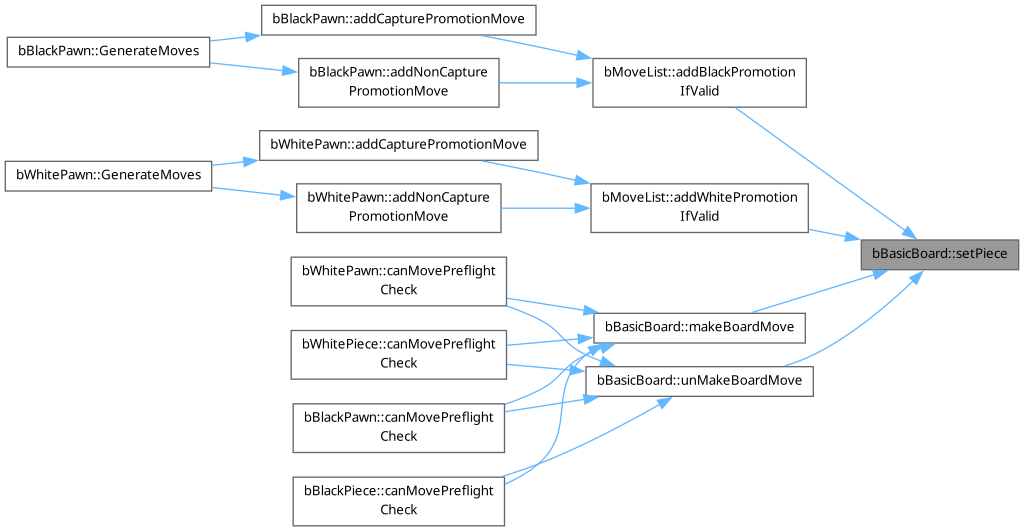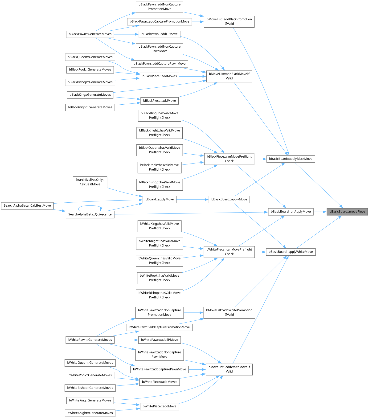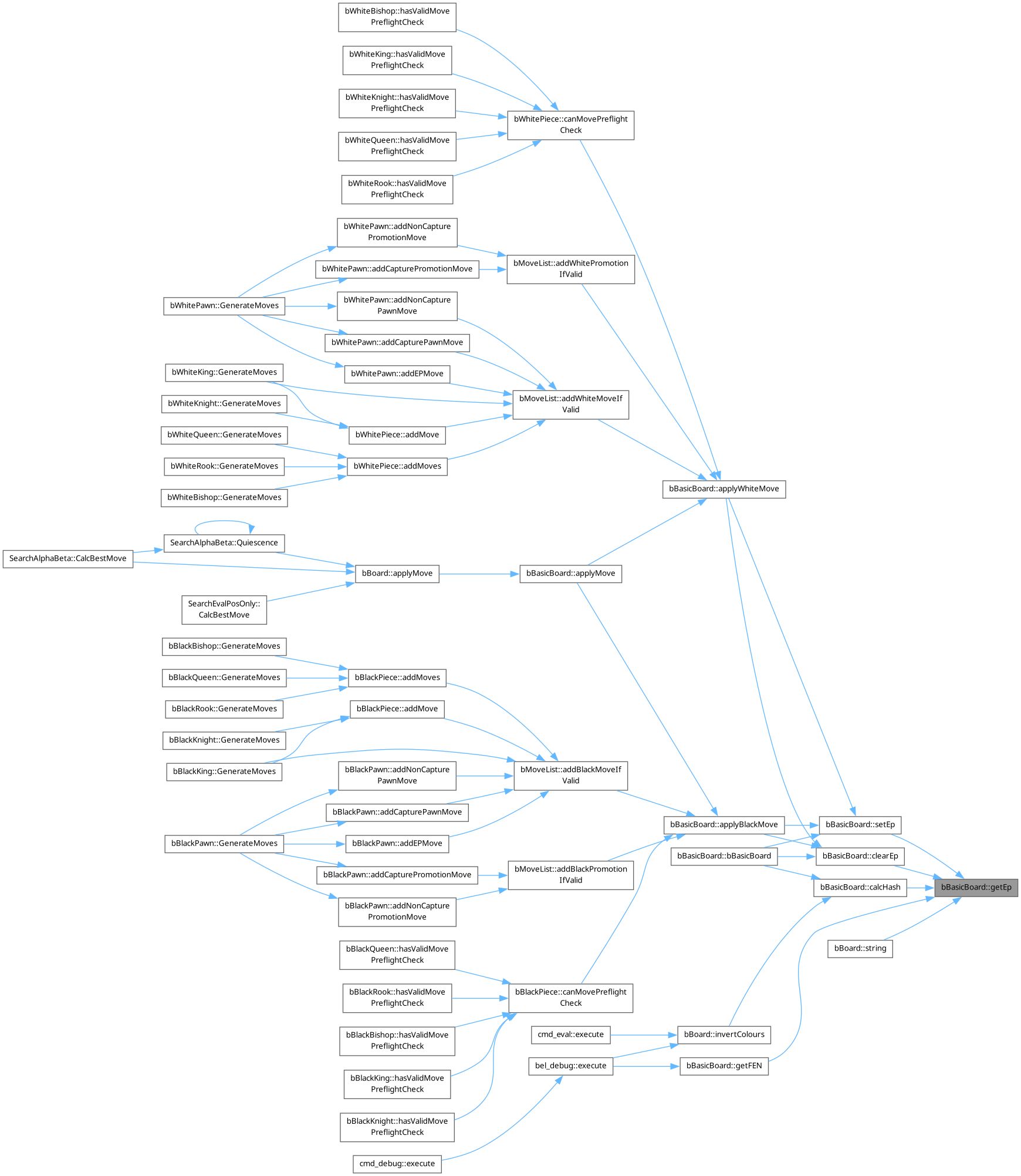 Referenced by bBlackPawn::addCapturePawnMove(), bWhitePawn::addCapturePawnMove(), bBlackPawn::addCapturePromotionMove(), bWhitePawn::addCapturePromotionMove(), bBlackPiece::addMove(), bWhitePiece::addMove(), bBlackPiece::addMoves(), bWhitePiece::addMoves(), applyBlackMove(), applyWhiteMove(), bMoveList::atLeastOneMovePossible(), calcHash(), bBoard::calcMinorPieces(), bBlackPawn::canMovePreflightCheck(), bBlackPiece::canMovePreflightCheck(), bBlackPiece::canMovePreflightCheck(), bWhitePawn::canMovePreflightCheck(), bWhitePiece::canMovePreflightCheck(), bWhitePiece::canMovePreflightCheck(), bMoveList::generateMoves(), PosEvalStaticBoard::getEndgameEvaluation(), PosEvalPiecesOnly::getEvaluation(), getFEN(), PosEvalStaticBoard::getMatingEvaluation(), PosEvalStaticBoard::getPawnEndingEvaluation(), PosEvalStaticBoard::getRelativeBoardEval(), bBoard::invertColours(), bBlackPiece::isAttacked(), bWhitePiece::isAttacked(), bPieceColour::isAttackedBySlider(), makeBoardMove(), bBoard::operator std::string(), unApplyMove(), and unMakeBoardMove().