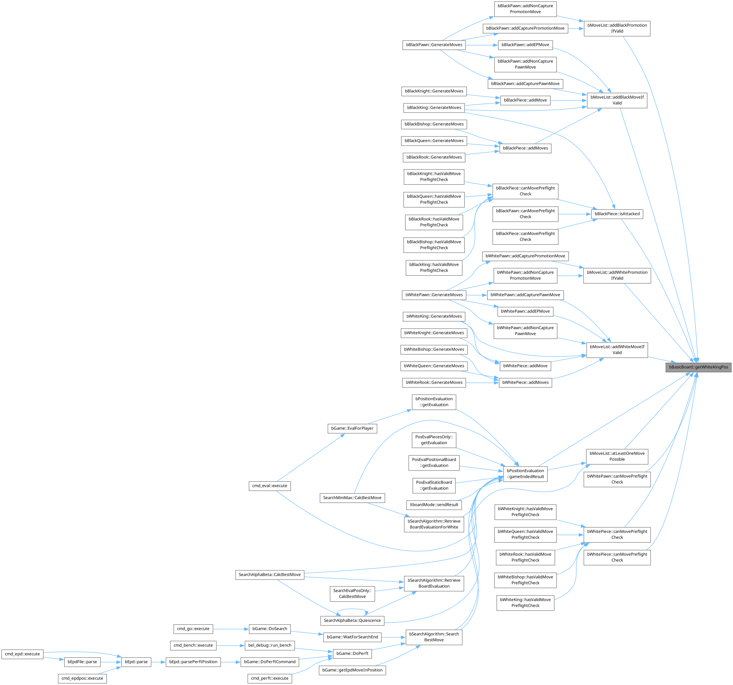 Referenced by bMoveList::addBlackMoveIfValid(), bMoveList::addBlackPromotionIfValid(), bMoveList::addWhiteMoveIfValid(), bMoveList::addWhitePromotionIfValid(), bMoveList::atLeastOneMovePossible(), bWhitePawn::canMovePreflightCheck(), bWhitePiece::canMovePreflightCheck(), bWhitePiece::canMovePreflightCheck(), bPositionEvaluation::gameEndedResult(), and bBlackPiece::isAttacked().