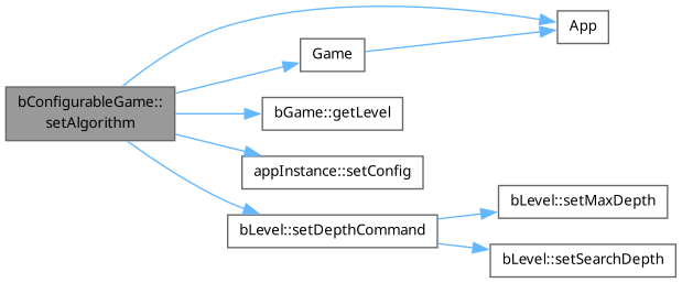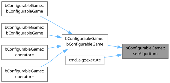Here is the call graph for this function:| void bConfigurableGame::setAlgorithm | ( | std::string const & | alg | ) |
