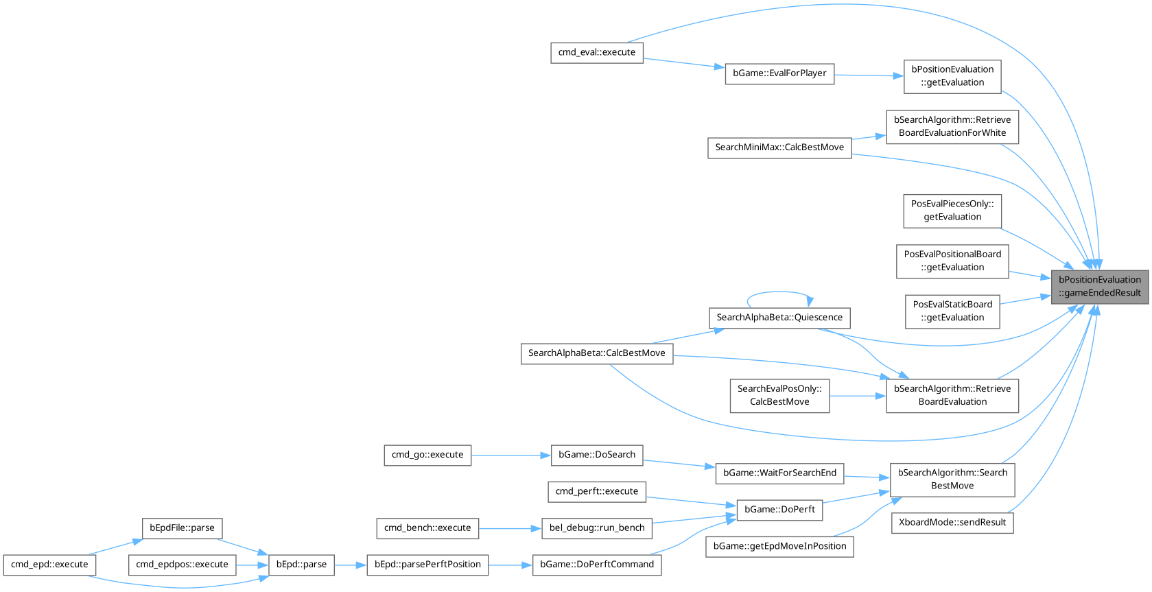 Referenced by SearchAlphaBeta::CalcBestMove(), SearchMiniMax::CalcBestMove(), cmd_eval::execute(), getEvaluation(), PosEvalPiecesOnly::getEvaluation(), PosEvalPositionalBoard::getEvaluation(), PosEvalStaticBoard::getEvaluation(), SearchAlphaBeta::Quiescence(), bSearchAlgorithm::RetrieveBoardEvaluation(), bSearchAlgorithm::RetrieveBoardEvaluationForWhite(), bSearchAlgorithm::SearchBestMove(), and XboardMode::sendResult().