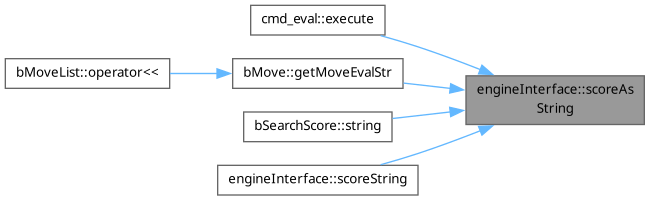 Referenced by cmd_eval::execute(), bMove::getMoveEvalStr(), bSearchScore::operator std::string(), and scoreString().