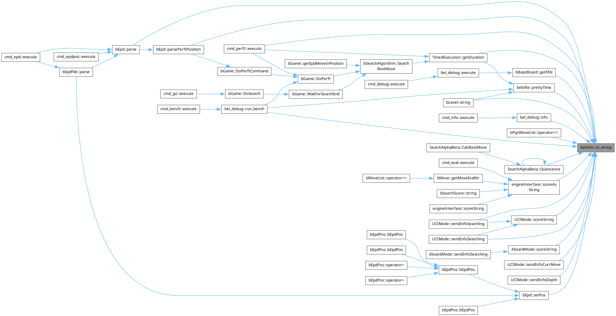 Referenced by cmd_perft::execute(), TimedExecution::getDuration(), bBasicBoard::getFEN(), bel_debug::info(), bLevel::operator std::string(), bPgnMoveList::operator<<, bEpd::parse(), bEpd::parsePerftPosition(), prettyTime(), SearchAlphaBeta::Quiescence(), bel_debug::run_bench(), engineInterface::scoreAsString(), UCIMode::scoreString(), XboardMode::scoreString(), UCIMode::sendInfoCurrMove(), UCIMode::sendInfoDepth(), UCIMode::sendInfoSearching(), UCIMode::sendInfoSearching(), and bEpd::setPos().